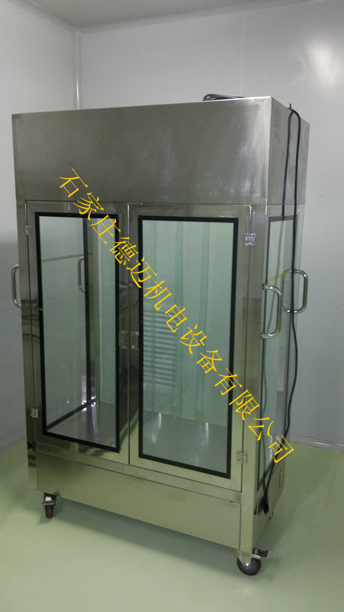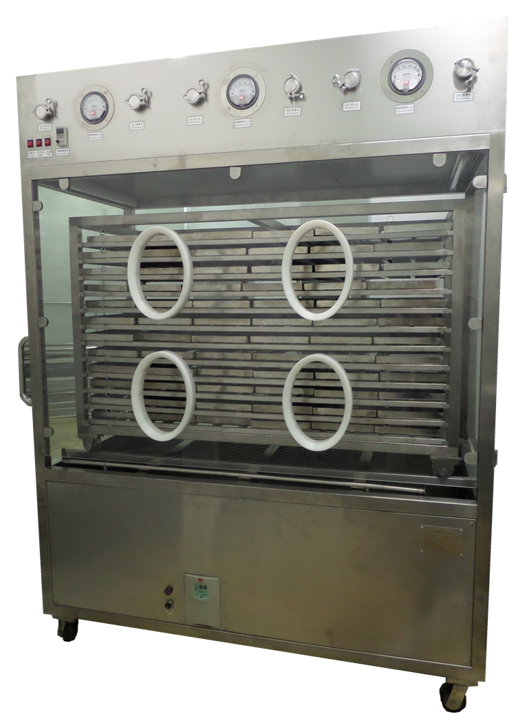 層罩內(nèi)裝有過(guò)濾風(fēng)機(jī),中層空間為工作區(qū),方便人工操作,下層擱架可臨時(shí)儲(chǔ)物